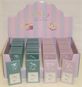 Baby Design frame with easel, glass window. 40 pieces 4 mixed designs in 2 colors. Packaged in display box. Price for each frame.