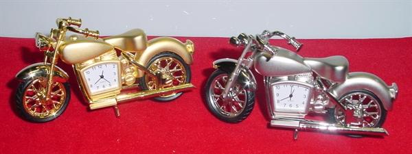 Clock , motorcyle, cast in solid metal and finished in brush & polish chrome finish. Featuring exquisite detail, steerable handle, fully moveable wheels and a quality quartz movement timepiece.